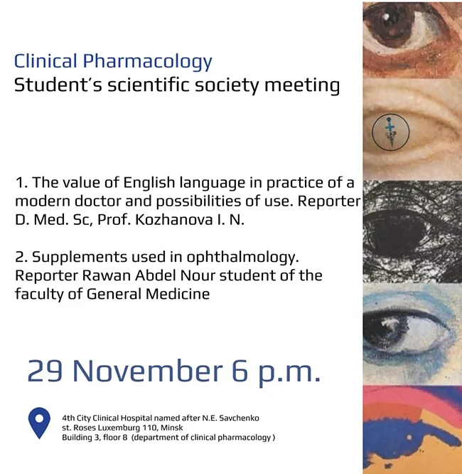As part of the scientific research the students have thematic dialogue and debates on topical issues of clinical pharmacology, pharmacogenetics, the organization providing pre-hospital care for patients - the work of emergency medical care, pharmacoepidemiology, pharmacoeconomics, drug therapy safety, clinical trials of drugs. Students of the department members of the circle every year are preparing abstracts and articles to the publication of materials on these issues.