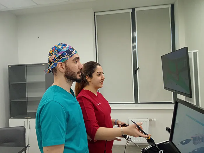 In 2023, teachers of the Department of General Surgery had the first practical classes at the Republican Center for Professional Certification and Simulation Training of Medical and Pharmaceutical Workers. The wide functionality of laparoscopic stands, as well as a simulated operating room, allows to master surgical skills both individually and in blocks, as well as perform simulated interventions in a wide range of scenarios. The center's specialists are always ready to help and are open to feedback to improve the quality of medical education.