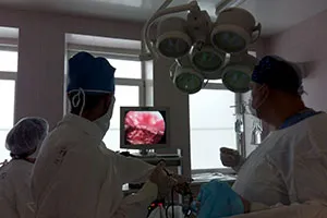 The surgical department uses modern treatment methods, including minimally invasive and endoscopic interventions for diseases of the stomach and intestines, hernias of the anterior abdominal wall, benign tumor diseases of the abdominal cavity and retroperitoneal space. The department's employees perform the full range of elective and emergency operations, among other things, training young doctors and interns, clinical residents, 3rd and 5th year students. The department has introduced and actively uses minimally invasive interventions for abdominal cavity lesions, laparoscopic techniques in perforated ulcer and acute appendicitis, including urgent pathology in pregnant women. In the candidate's thesis of assistant Amelchenya (Fateeva) O.A., dedicated to the problem of acute appendicitis during pregnancy, an original approach is given that allows solving the problem of this common surgical pathology with minimal trauma, reducing the risks for both the woman and the fetus, and substantiates the pathogenetic approach to postoperative management of such patients. Also Amelchenya O.A. and Professor G.P. Rychagov have developed special tools for laparoscopy in pregnant women, minimizing the likelihood of iatrogenic damage to the pregnant uterus when placing the first trocar during laparoscopy.