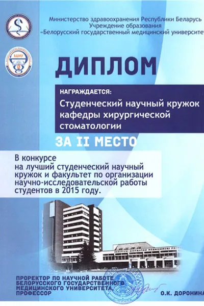Every year students participate in the University competition of students scientific works in the section “Maxillo-facial and oral surgery” laureates of which take participation in the Republic competition of students’ scientific research works and every year take Diplomas of the I, II degrees.
