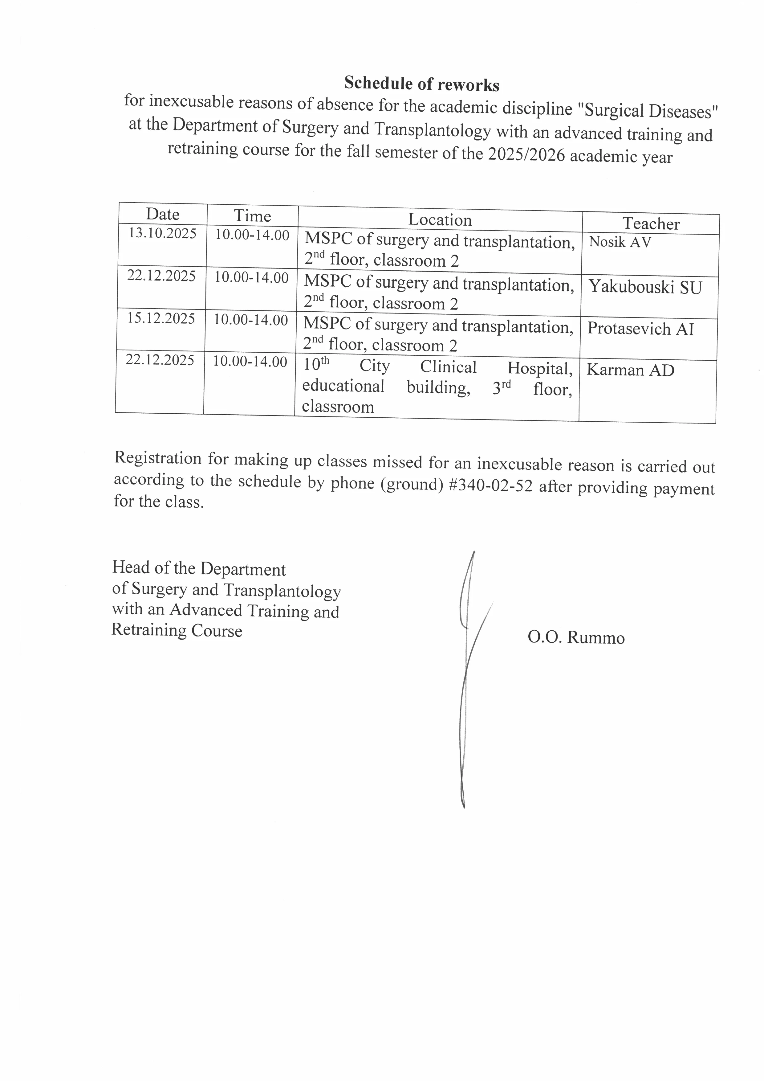 Information for students of the department of Surgical Diseasess