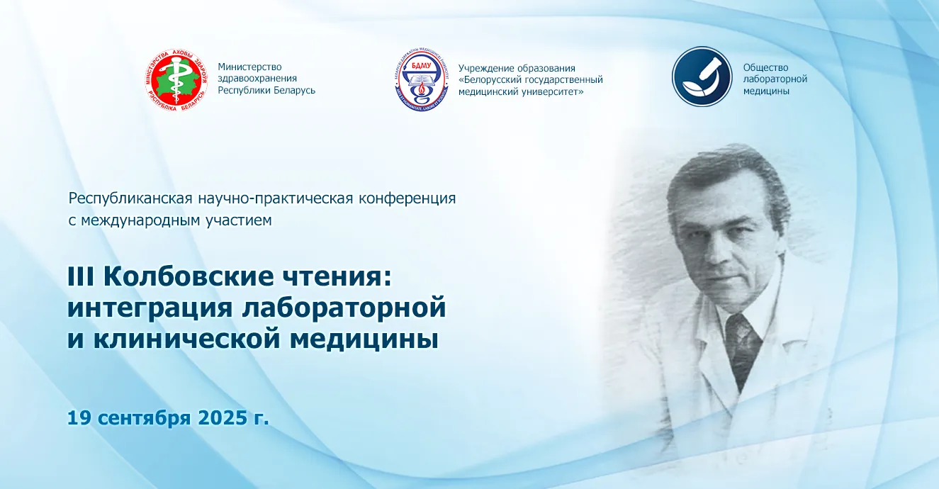 Учреждение образования «Белорусский государственный медицинский университет» 19 сентября 2025 г. на базе учреждения образования «Белорусский государственный медицинский университет» совместно с общественным объединением «Общество лабораторной медицины» проводит Республиканскую научно-практическую конференцию с международным участием «III Колбовские чтения: интеграция лабораторной и клинической медицины».
