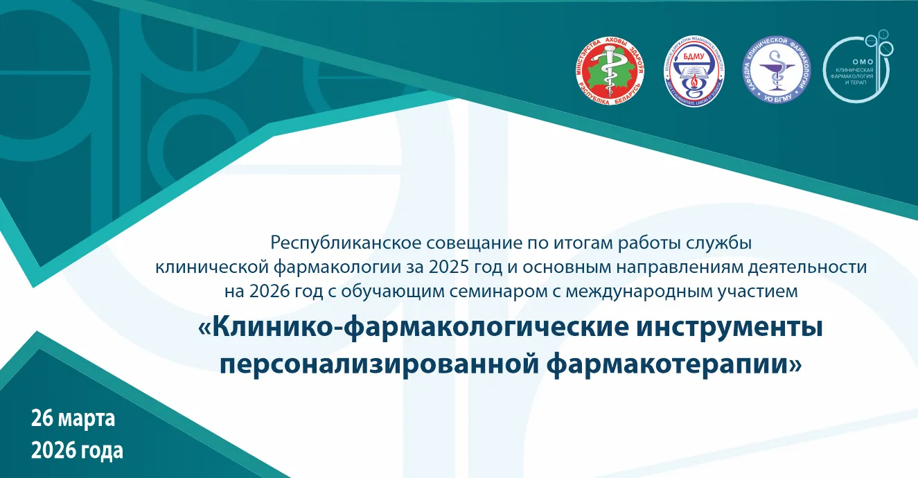 26 марта 2026 г. состоится республиканское совещание по итогам работы службы клинической фармакологии за 2025 год и основным направлениям деятельности на 2026 год с обучающим семинаром с международным участием «Клинико-фармакологические инструменты персонализированной фармакотерапии».