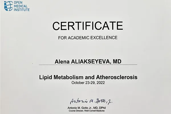 Ассистент кафедры поликлинической терапии Елена Алексеева стала участником международного семинара по метаболизму липидов и атеросклерозу