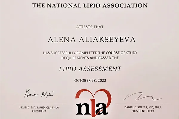 Стипендиатам был предоставлен и уникальный шанс пройти официальный экзамен Национальной липидной ассоциации по контролю липидов. Это был первый опыт проведения экзамена вне США. Безусловно, все участники воспользовались данной возможностью, но лишь несколько человек успешно справились с поставленной задачей, в том числе Елена Алексеева.