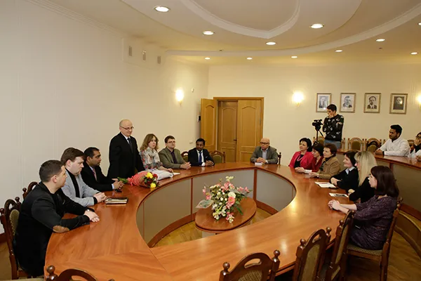 В завершение встречи ректор отметил, что в университете обучаются более 7 тысяч студентов, свыше полутора тысяч составляют студенты из разных стран мира, что Белорусский государственный медицинский университет активно сотрудничает с зарубежными коллегами из разных стран. Анатолий Викторович подчеркнул, что Белорусский государственный медицинский университет занимает лидирующее положение в Республике Беларусь не только среди учреждений высшего медицинского образования, но и в целом в общей системе подготовки специалистов с высшим образованием.