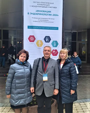 25–27 апреля в городе Санкт-Петербурге на базе Федерального государственного бюджетного учреждения «Национальный медицинский исследовательский центр имени В. А. Алмазова» прошла научно-практическая конференция с международным участием «Инновации в эндокринологии – 2024», в которой приняли участие специалисты из России, Беларуси, Узбекистана, Индии. В нашу делегацию вошли сотрудники Белорусского государственного медицинского университета (заведующий кафедрой эндокринологии, доктор медицинских наук, профессор Татьяна Вячеславовна Мохорт, профессор кафедры эндокринологии, доктор медицинских наук Наталья Викторовна Карлович, доцент кафедры эндокринологии Института повышения квалификации и переподготовки кадров здравоохранения, кандидат медицинских наук, доцент Виктор Владимирович Валуевич), а еще заместитель главного врача по организационно-методической работе государственного учреждения «Республиканский центр медицинской реабилитации и бальнеолечения», главный внештатный эндокринолог Министерства здравоохранения Ольга Борисовна Салко.