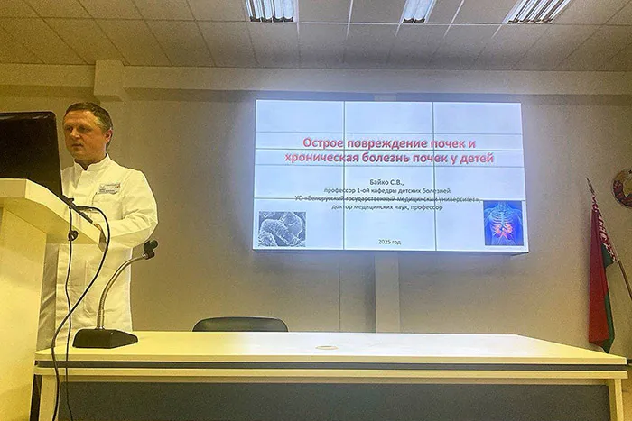 Затем профессор 1-й кафедры детских болезней, доктор медицинских наук, профессор Сергей Валерьевич Байко изложил клинико-лабораторные проявления острой и хронической почечной недостаточности у детей и поделился клиническим опытом, основанным на многолетних исследованиях кафедры в области нефрологии.