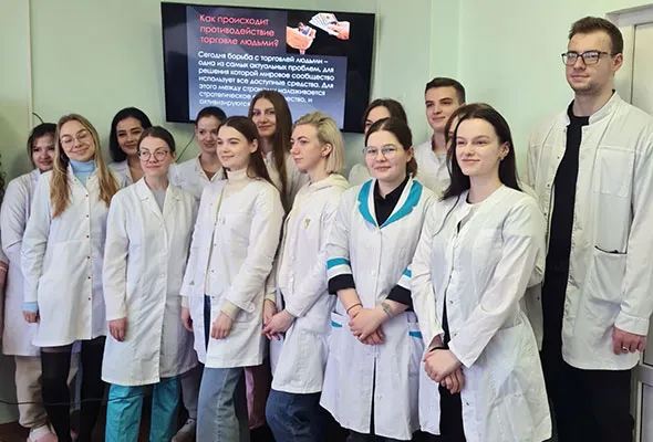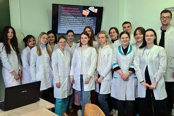 Учитывая высокую актуальность и значимость рассмотренной проблемы, преподаватели 2-ой кафедры детских болезней (асс. Долидович Е.Ю., асс. Писарик Д.М.) совместно со студентами педиатрического (группа 2514) и лечебного (группа 1420) факультетов подготовили и провели информационную акцию « Торговля людьми: угроза, скрытая на виду у всех».