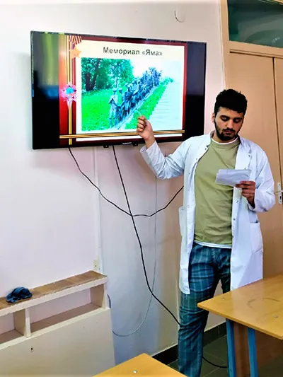 В честь знаменательного события студенты медицинского факультета иностранных учащихся группы 6205 вместе со своим куратором решили обратиться к истории того времени и , так как Минск – один из первых советских городов, принявших на себя удар гитлеровцев. 22 июня 1941 года фашистская Германия напала на Советский Союз, уже 25 июня начались бои за столицу. Оккупация Минска длилась 1100 дней – с 28 июня 1941 года по 3 июля 1944 года.