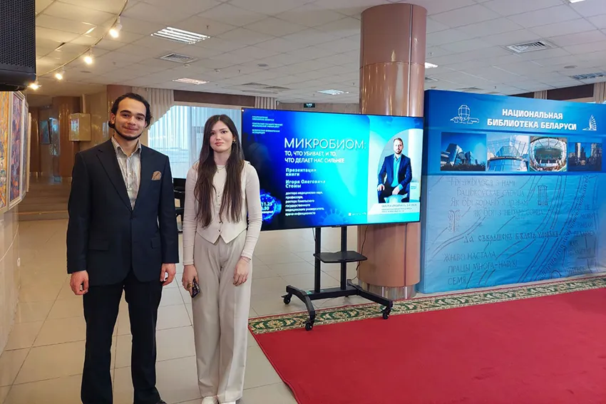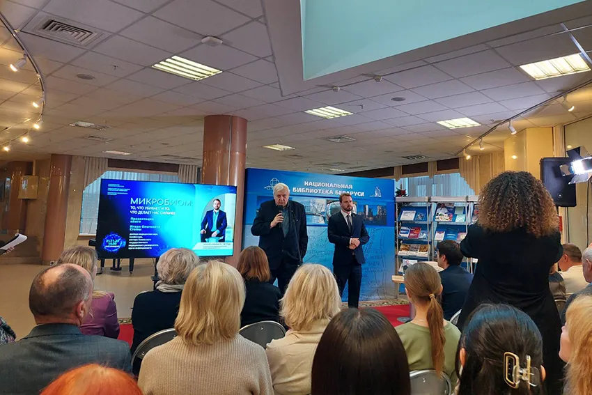 21 ноября в Национальной библиотеке Республики Беларусь прошла презентация книги Игоря Стомы «Микробиом: то, что убивает, и то, что делает нас сильнее». Это значимое научное событие собрало вместе специалистов, исследователей и всех, кто интересуется современными достижениями в области микробиологии и медицины. Встретиться с известным человеком посчастливилось преподавателям кафедры белорусского и русского языков, а также студентам МФИУ (групп 6110 и 6225 «Лечебное дело»).