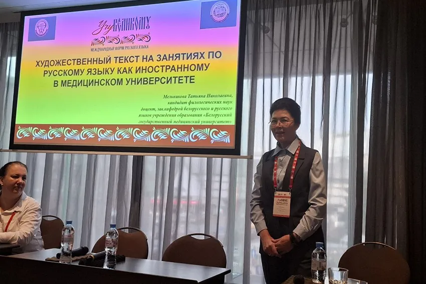 На одной из сессий Татьяны Мельниковой был представлен доклад «Художественный текст на занятиях по русскому языку как иностранному в медицинском университете», где всесторонне рассматривалась роль русской художественной литературы при изучении русского языка иностранными студентами-медиками. Кроме того, докладчик продемонстрировала созданное ею и преподавателями кафедры белорусского и русского языков нашего университета учебное издание с грифом Министерства образования Республики Беларусь «Русский язык как иностранный. Медицинский профиль». Книга, включающая художественные произведения писателей-медиков, у всех участников Форума вызвала огромный интерес, поскольку решает сразу несколько задач: развивает языковые и аналитические навыки, управляет процессом обучения, активизирует эмоционально-волевую сферу обучающихся, повышает мотивацию и интерес к изучению языка.