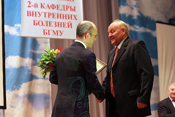 От имени Президиума Республиканского комитета профсоюза медицинских работников выступил первый заместитель председателя Президиума В. И. Граньков, который отметил известность сотрудников 2-й кафедры внутренних болезней в медицинской общественности Республики, указал на важную роль кафедры в подготовке врачей терапевтического профиля. Первый проректор БГМУ, профессор С. В. Жаворонок приветствовал участников конференции от имени ректората и вручил кафедре памятный подарок – современный компьютер. Сотрудников 2-й кафедры внутренних болезней с юбилеем от имени главного врача Республиканского клинического медицинского центра Управления делами Президента Республики Беларусь И. С. Абельской поздравил заместитель главного врача Д. С. Тихон.