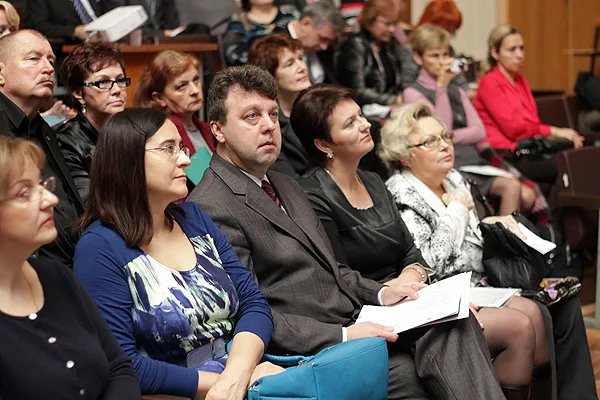 От имени Министерства здравоохранения участников конференции приветствовала начальник Главного управления организации медицинской помощи Е. Л. Богдан. Она говорила о важности терапевтической службы в системе здравоохранения, трудностях работы врача-терапевта в связи с огромным объемом информации по внутренним болезням. Отметила значительную роль 2-й кафедры внутренних болезней в оказании медицинской помощи пациентам терапевтического профиля. Она подчеркнула, что кафедра известна не только высокой квалификацией специалистов, но и выдающимися результатами научных исследований: за 50 лет кафедрой подготовлено 8 докторов медицинских наук и 78 кандидатов медицинских наук. Кафедра на протяжении 35 лет является составной частью Республиканского ревматологического центра. В заключение своего выступления Е. Л. Богдан вручила значок «Отличник здравоохранения» профессору 2-й кафедры внутренних болезней Е. Л. Трисветовой и почетную грамоту Министерства здравоохранения заместителю декана лечебного факультета, доценту 2-й кафедры внутренних болезней М. А. Савченко.