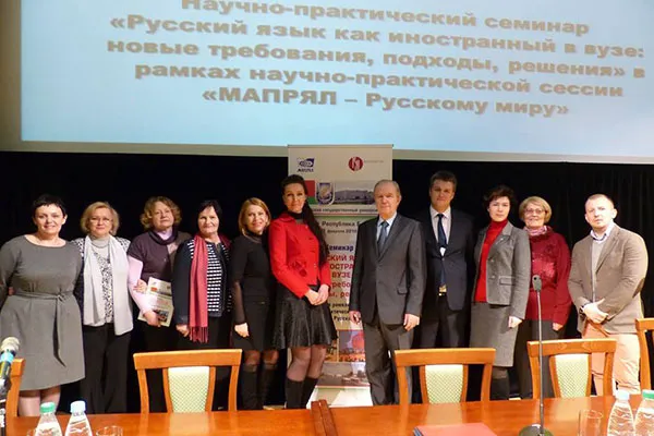 В рамках научно-практической сессии «МАПРЯЛ ˗ русскому миру» 16 февраля в киноконцертном зале Дома Москвы в Минске состоялось торжественное открытие семинара «Русский язык как иностранный в вузе: новые требования, подходы, решения».