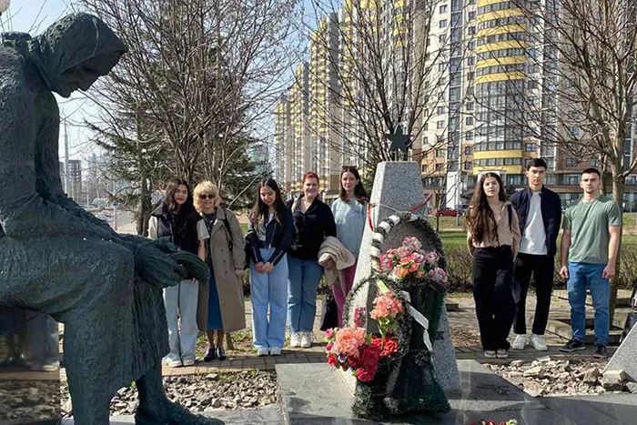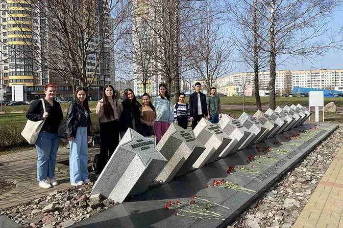Недавно наша группа 6103 медицинского факультета иностранных учащихся отправилась на пешую экскурсию недалеко от главного корпуса медицинского университета. Уже не раз студенты, приехавшие из разных стран, замечали, что жители Минска свято чтят память о погибших во время Великой Отечественной войны. Это выражается в многочисленных обелисках, памятниках и мемориалах, ухоженных братских могилах, улицах и парках, названных в честь героев той страшной войны.