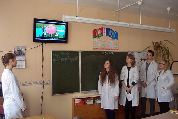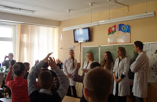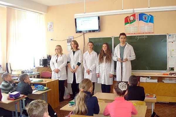 с этих слов, мы, студенты 253 группы медико-профилактического факультета начали свое выступление перед школьниками средней школы №219 г. Минска, куда пришли вместе с нашим куратором Еленой Анатольевной, доцентом кафедры биологической химии.