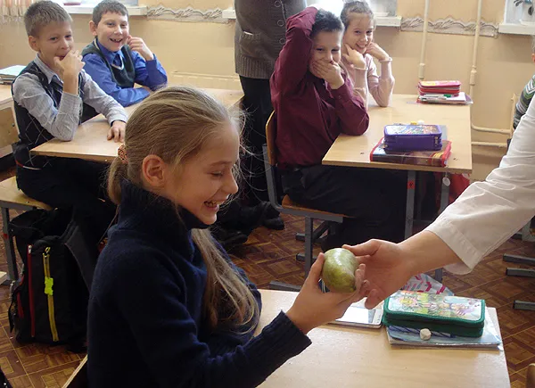 Мы рассказали школьникам о незаменимых факторах питания, показали интересный и поучительный мультфильм про здоровую пищу и полезные напитки. Провели викторину для ребят в стиле загадок, и кто первым отгадывал получал призы - фрукты.