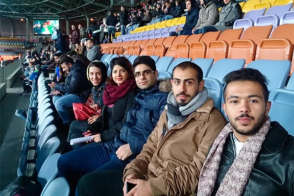 Ребята с интересом и азартом наблюдали за борьбой команд на поле. В начале матча студенты из Иордании, Ливана, Ирана, Ирака, Сирии, Бразилии и Туркменистана разделились на болельщиков сборной Голландии и сборной Беларуси, но уже во втором тайме все ребята единогласно поддерживали сборную Республики Беларусь. Ребята не могли сдерживать свои переживания, поддерживая игроков аплодисментами и словами «Вперед, Беларусь!» Игра оказалась напряженной и нелегкой. Гости очень мощно стартовали во втором тайме, но белорусы, как будто усыпив соперника, смогли перехватить инициативу и в течение нескольких минут создали ряд опасных моментов. К сожалению, ни один из этих моментов не завершился голом.