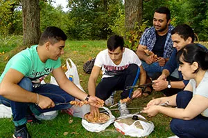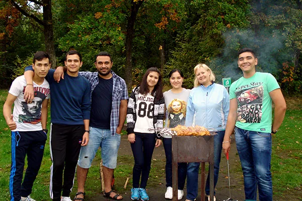 Здесь на природе, подальше от дорог и городского шума студенты прекрасно провели время: приготовили любимые национальные блюда, поиграли в подвижные игры (волейбол и футбол), получили положительные эмоции и заряд энергии от общения друг с другом.