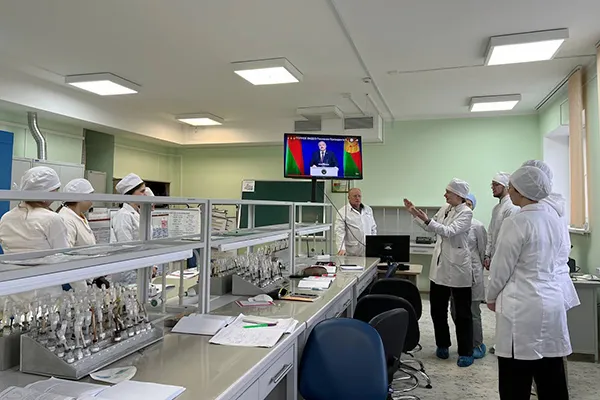 31 марта 2023 г. студенты 2 курса фармацевтического факультета слушали послание Президента Республики Беларусь Александра Григорьевича Лукашенко парламенту и белорусскому народу. Во время речи Президента в аудитории также присутствовали декан фармацевтического факультета. Доктор биологических наук, профессор Наталья Сергеевна Гурина и доцент кафедры фармацевтической химии Владимир Николаевич Беляцкий.