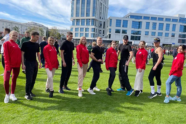Стадион собрал более тысячи человек из числа актива ОО «Белорусский республиканский союз молодежи» столицы совместно с лидерами молодежной организации. Среди самых спортивных оказались и наши студенты – команда Белорусского государственного медицинского университета по чирлидингу под руководством старшего преподавателя кафедры физического воспитания и спорта, тренера сборной БГМУ по чирлидингу Елены Анатольевны Барановой и студенты лечебного факультета 1111 группы во главе со старшим преподавателем кафедры физического воспитания и спорта Андреем Юрьевичем Хонским.