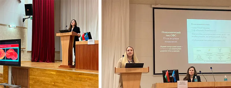 Доцент Анастасия Александровна Далидович представила доклад «Хирургическое лечение диабетической ретинопатии». Старший преподаватель Ольга Викторовна Терешенко выступила с научным сообщением «Диагностика и лечение окклюзий вен сетчатки». Ассистент Екатерина Сергеевна Потапова представила доклад «ЮРА-ассоциированные увеаретинопатии, аспекты курабельности».