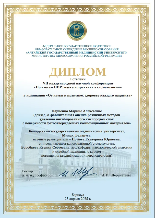 23 апреля на базе ФГБОУ ВО «Алтайский государственный медицинский университет» город Барнаул прошла VII международная научная конференция «По итогам НИР: наука и практика в стоматологии».