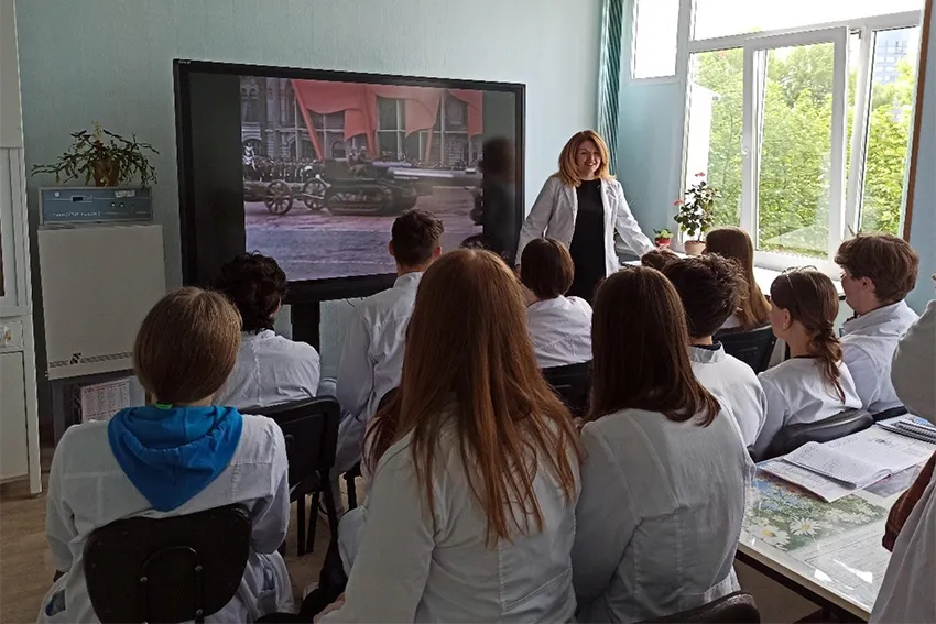 Также преподавателями кафедры был организован просмотр и обсуждение документального фильма "1945. Спасибо за Победу!", посвященного завершающему этапу Великой Отечественной войны 1944 - 1945 гг. О событиях того времени в фильме рассказывают непосредственные участники - ветераны ВОВ, которые день за днем приближали нашу Победу. Ребята групп 7102 и 7112 проявили искренний интерес к теме ВОВ и Победы, обсуждали героизм нашего народа, вспомнили ветеранов и участников ВОВ в своих семьях.