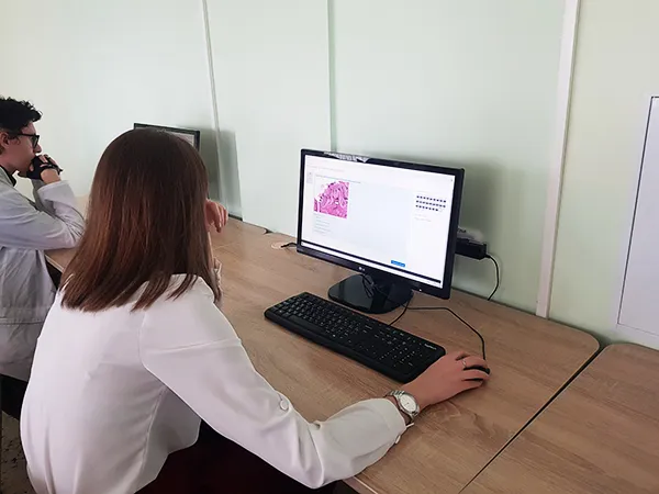 Финалисты второго тура были допущены к практическим заданиям третьего этапа конкурса. Студентам демонстрировались цифровые изображения гистологических препаратов. Конкурсанты должны были указать представленный орган или его фрагмент, определить все требуемые структуры.