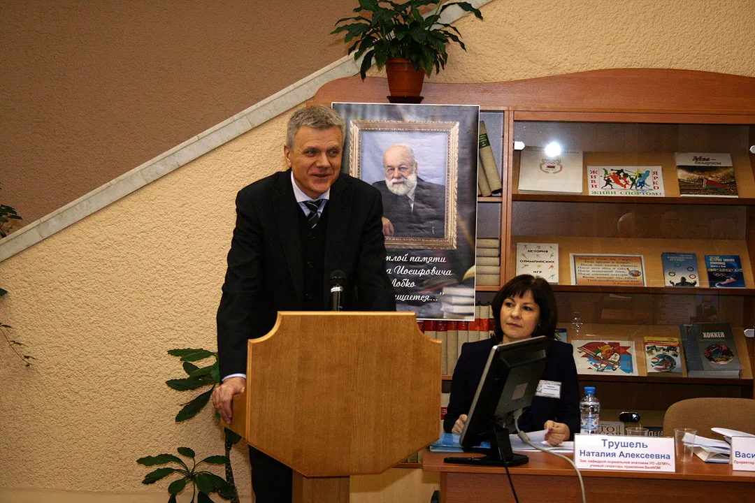 Открыли конференцию проректор по международным связям БГМУ, профессор Руденок В.В. и зав. кафедрой нормальной анатомии БГМУ Трушель Н.А.