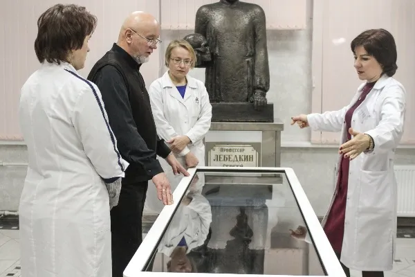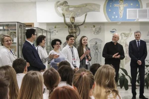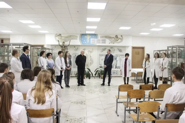 Для гостей доцент кафедры нормальной анатомии Пасюк Анна Андреевна провела экскурсию по анатомическому музею, показала анатомический стол с системной визуализацией.