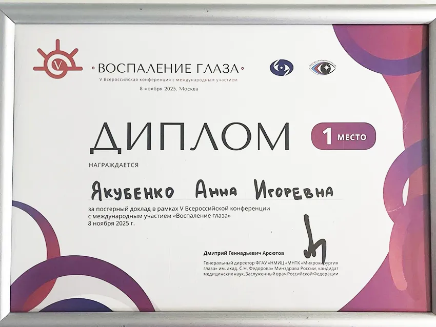 8 ноября в Москве состоялась юбилейная V Всероссийская конференция с международным участием «Воспаление глаза». В конференции приняла участие соискатель кафедры офтальмологии Института повышения квалификации и переподготовки кадров здравоохранения Анна Якубенко.