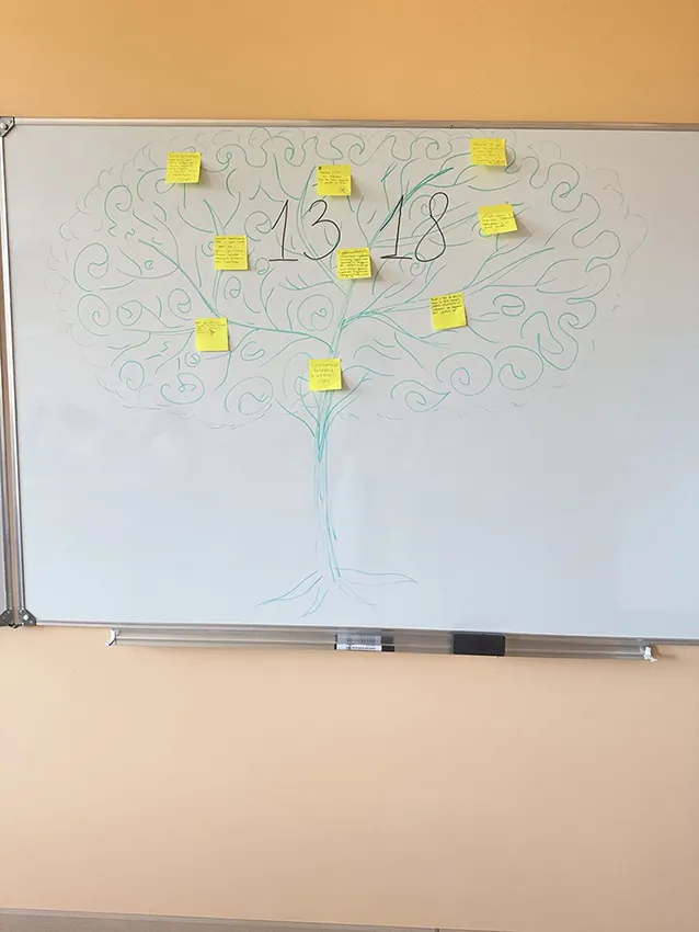 В рамках воспитательного часа, посвященного Дню знаний, и тематического занятия «Эстафета поколений: сохраняя прошлое, создаём будущее» студенты 1318 группы лечебного факультета были ознакомлены с историей данного праздника, а также с целью позитивного настроя на новый учебный год студентам было предложено оформить «дерево добрых пожеланий» цветными стикерами с пожеланиями.
