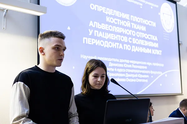 Диплом III степени: Определение плотности костной ткани альвеолярного отростка у пациентов с болезнями периодонта по данным КЛКТ. Авторы: Пракопович Дмитрий Юрьевич (БГМУ, стомфак, 7416 гр.), Тимофеева Оксана Олеговна (БГМУ, стомфак, 7416 гр.). Руководитель: д-р мед. наук, проф. Денисова Юлия Леонидовна.