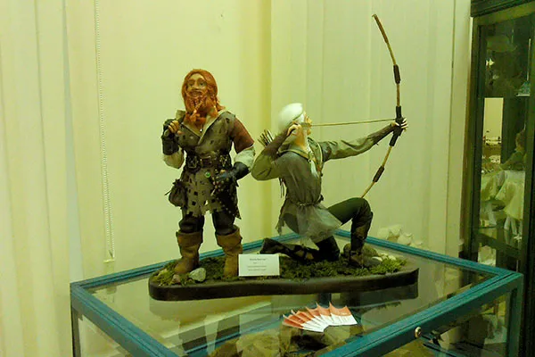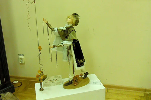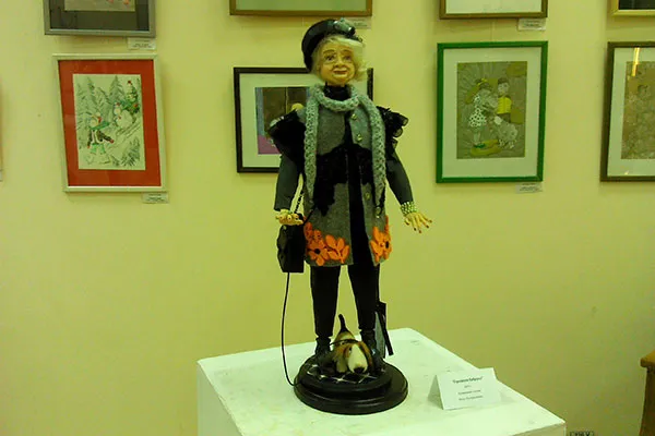 В витринах разместились и трепетная рыжеволосая Шахерезада, и самодовольная сваха в нарядном платье с бантом и в туфлях по тогдашней моде с каблучком-рюмочкой, и трогательная Алиса из страны чудес с кроликом, и щекастый бонвиван в кресле с эротическим журналом в руках, и другие персонажи - «юморные» и философские, веселые и печальные. Выполненные авторами в разных техниках (и мягкие, и из полимерного и застывающего пластиков, и из шамота), эти куклы объединены тщательной продуманностью характеров, точностью деталей, филигранным исполнением мельчайших деталей (вплоть до крошечных пуговок на одежде!). Это то, что называется Мастерством.