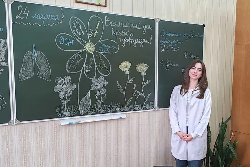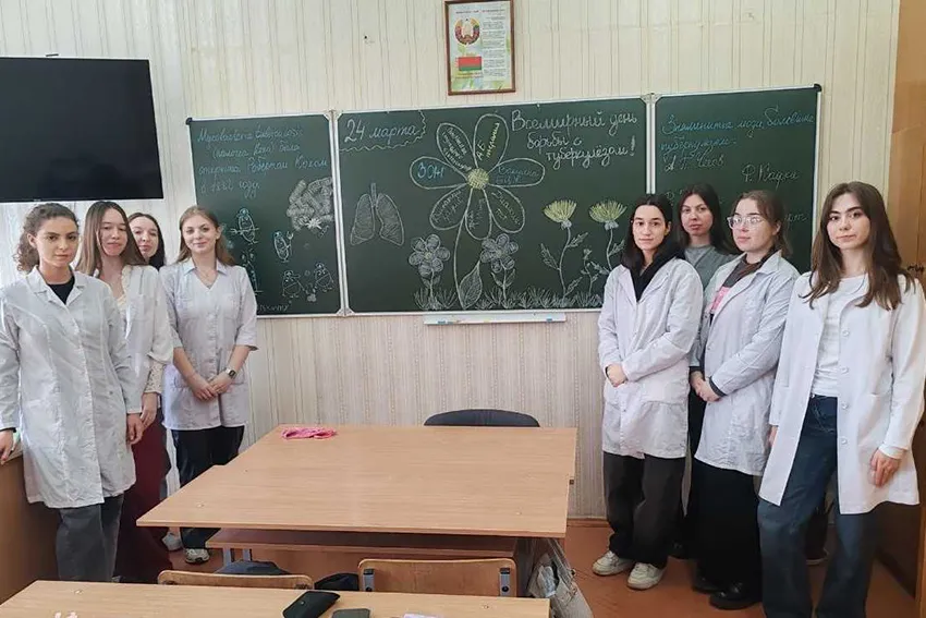 С 24 по 28 марта на кафедре эпидемиологии прошли информационные часы в учебных группах, посвященные вопросам борьбы с туберкулезом. Были задействованы студенты практически всех факультетов: и лечебного, и педиатрического, и медико-профилактического. Не остались в стороне и студенты медицинского факультета иностранных учащихся. В ходе мероприятий ребята ознакомились с основными тенденциями в вопросах распространения туберкулеза, заболеваемости и смертности. Особое внимание было уделено мерам профилактики. Ребятам было предложено нарисовать на доске «ромашку профилактики».