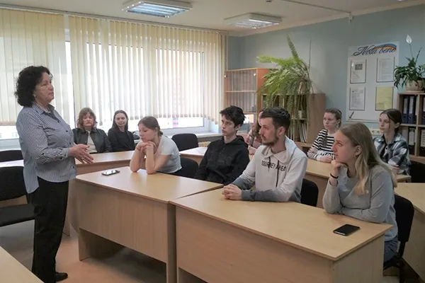 Людмила Павловна зачитала отрывки из книг «Iмгненнi», «Вузкiмi cцeжкамi», автором которых она является, предлагала присутствующим студентам почитать свои произведения, рассказать истории, которые, возможно, произошли в годы войны с кем-то из близких их семьям людьми.