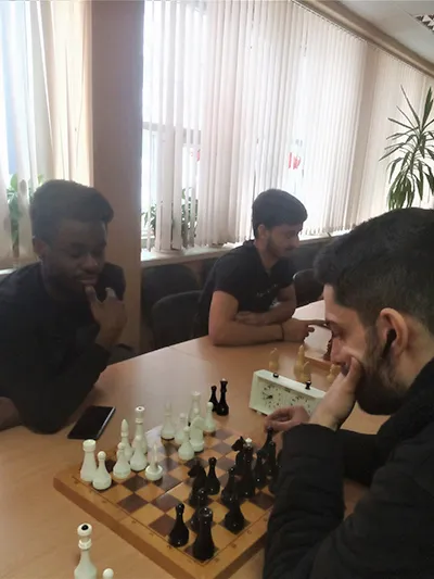 25 января в нашем университете под руководством Дениса Борисовича Рукавицына прошло первенство по шахматам среди студентов общежитий № 5, № 6 и № 7. Поддавшись общему настроению, сотрудники кафедры физического воспитания и спорта – доцент Денис Борисович Рукавицын и старший преподаватель Сергей Владимирович Суетин – тоже сыграли партию.