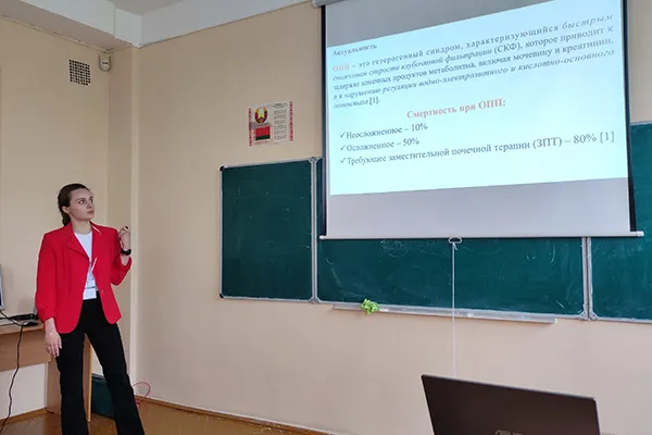 Другая работа на той же секции по теме «Кислотно-основное состояние и азотемия у пациентов с острым почечным повреждением и хронической болезнью почек в терминальной стадии», представленная студенткой 3-го курса лечебного факультета Елизаветой Шевцовой под научным руководством старшего преподавателя кафедры патологической физиологии Екатерины Шуляк, была награждена дипломом II степени.