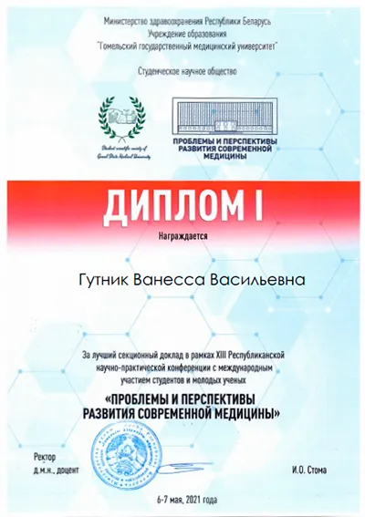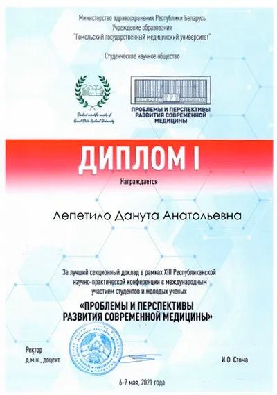 Кафедра патологической физиологии Белгосмедуниверситета поздравляет Ванессу Гутник и Дануту Лепетило с великолепным результатом и желает дальнейших успехов в научной деятельности!