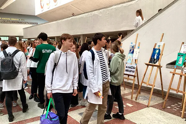 На церемонии открытия выставки выступили первый проректор, доктор медицинских наук, профессор Ирина Николаевна Мороз, декан стоматологического факультета (который, кстати, являлся идейным вдохновителем данного действа вместе со своими коллегами и студентами-стоматологами), кандидат медицинских наук, доцент Татьяна Леонидовна Шевела, декан фармацевтического факультета, доктор биологических наук, профессор Наталия Сергеевна Горина, а также глава Республиканского центра биоэтики Валерия Николаевна Сокольчик. Все они говорили о значении биоэтики в современном мире, включая сферу медицины, отмечая важность подобных мероприятий для будущих врачей и не только для них.