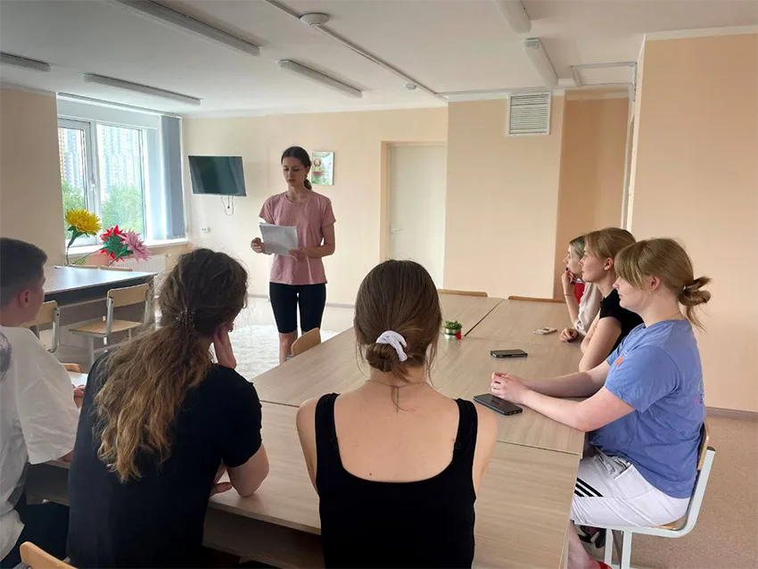 16 июля для студенческого сервисного отряда «Крепость» имени Героя Советского Союза Егора Иосифовича Полегаева, задействованного в приёмной комиссии БГМУ, в корпусе практико-ориентированного обучения прошел Единый день информирования. Спикером выступил Вадим Борисюк, заместитель начальника Центра по идеологической и воспитательной работе - начальник отдела идеологической работы. Он рассказал ребятам о том, что благодаря решительности белорусского лидера, трудолюбию граждан и принятию выверенных решений наша страна уверенно движется вперед в своем развитии.