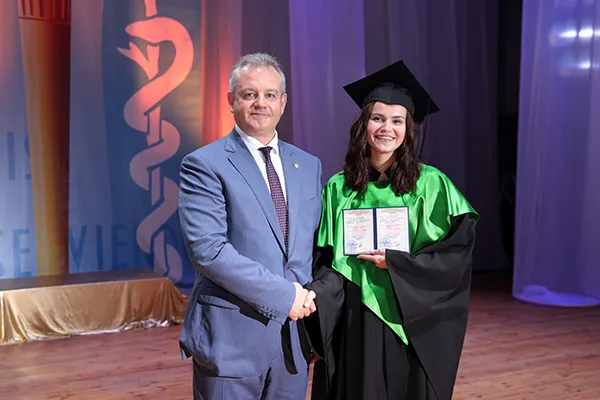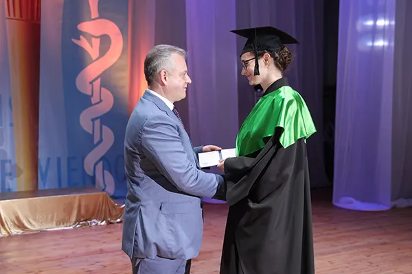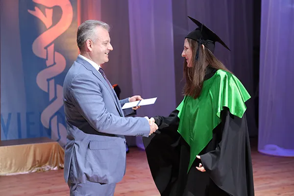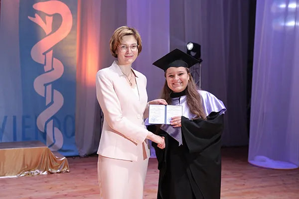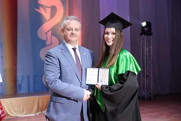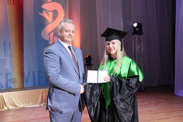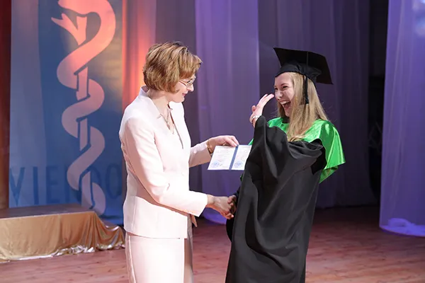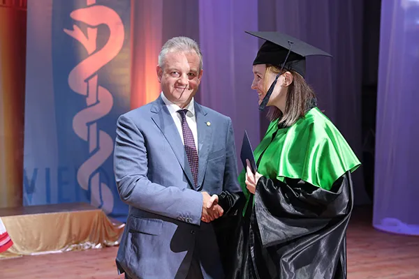 – Торжественный день, к которому вы шли все эти годы, ступенька за ступенькой преодолевая преграды, наступил. Сегодня вы получаете дипломы самого престижного учреждения высшего образования страны, флагмана отечественной медицинской и фармацевтической науки – Белорусского государственного медицинского университета, – подчеркнул на церемонии выпуска ректор. – Позади остались долгие годы напряженной учебы. Но главный экзамен впереди, и он будет длиться всю жизнь. Это экзамен на компетентность, умение брать на себя ответственность, принимать жизненно важные решения. Ведь теперь от ваших знаний, умений, навыков будет зависеть главное, что есть у человека, – здоровье.