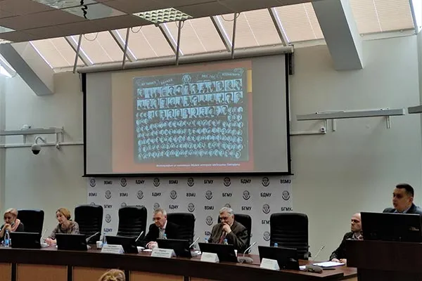 Григорий Чистенко, профессор кафедры эпидемиологии, Ирина Сысоева, и. о. декана медико-профилактического факультета, Елена Кирильчик, доцент кафедры микробиологии, вирусологии и иммунологии, фото предоставлены оргкомитетом конференции; Арамом Аветисовым, заведующим кафедрой радиационной медицины и экологии, Игорем Семёновым, заведующим кафедрой гигиены труда, Павлом Лепешко, старшим преподавателем кафедры гигиены труда БГМУ