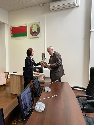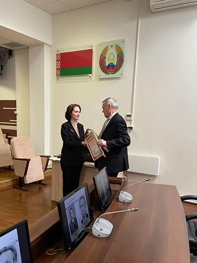 От имени профсоюзной организации профессорам Григорию Николаевичу Чистенко и Михаилу Ивановичу Римже за многолетнюю активную деятельность в сфере пропаганды профсоюзного движения, личный вклад в духовно-патриотическое воспитание молодежи почетные грамоты вручила председатель первичной профсоюзной организации работников БГМУ Наталья Александровна Кибик.