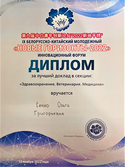 По решению компетентного жюри исследование Ольги Сечко удостоено первого места в секции «Здравоохранение. Ветеринария. Медицина». Янине Некрашевич и Марии Кривоносовой были вручены сертификаты участников.