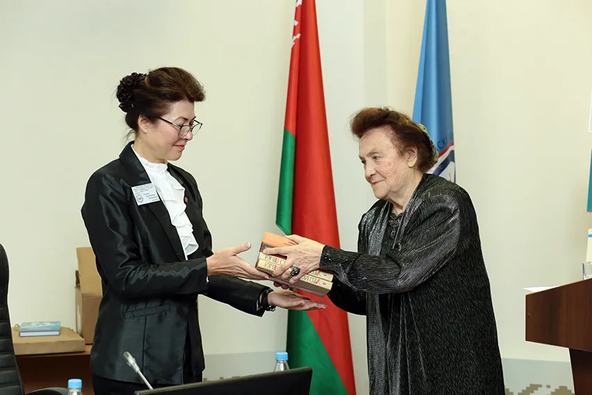 Почетным гостем конференции, выступившим на пленарном заседании с докладом о роли кафедры белорусского и русского языков в формировании профессиональных и социально-гуманитарных компетенций будущих медиков, стала Алла Владимировна Санникова – основатель и первый заведующий кафедрой. Она стояла у истоков не только кафедры белорусского и русского языков БГМУ, но и факультета доуниверситетского образования БГУ, являясь единственным преподавателем Беларуси, награжденным медалью имени А. С. Пушкина, которая вручается в разных странах мира за высокий уровень преподавания русского языка. Алла Владимировна пришла в гости не с пустыми руками: она преподнесла в дар любимой кафедре книги, на которых проходило ее методическое становление.