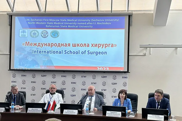 26 мая в Белорусском государственном медицинском университете в очном формате состоялось второе заседание «Международной школы хирурга» с участием представителей трех университетов: Белорусского государственного медицинского университета (БГМУ), Первого МГМУ имени И. М. Сеченова Минздрава России (Москва) и Северо-Западного государственного медицинского университета имени И. И. Мечникова (Санкт-Петербург).