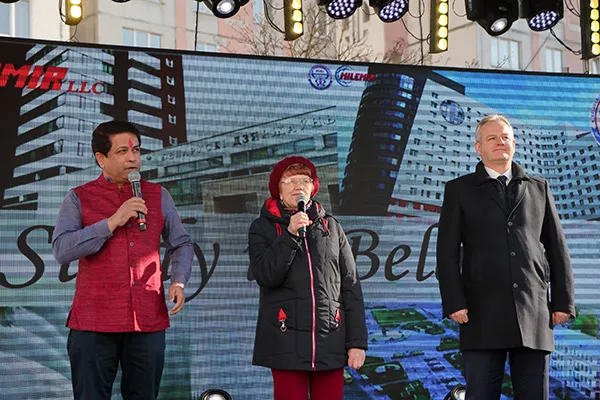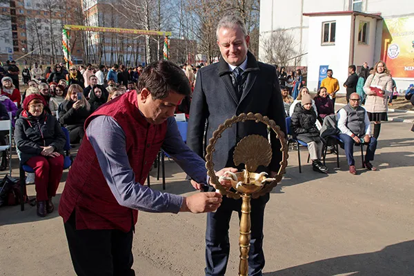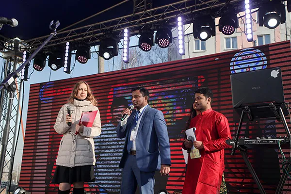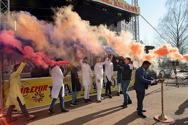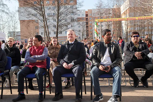 …На торжественной церемонии открытия Холи выступили Чрезвычайный и Полномочный Посол Республики Индия в Республике Беларусь Алок Ранджан Джа, ректор Белорусского государственного медицинского университета, доктор медицинских наук, профессор Сергей Петрович Рубникович, проректор по международным связям, доктор медицинских наук, профессор Василий Васильевич Руденок, директор ООО «МИЛЕМИР» Сах Рама Шанкар (который стал одним из главных организаторов мероприятия).